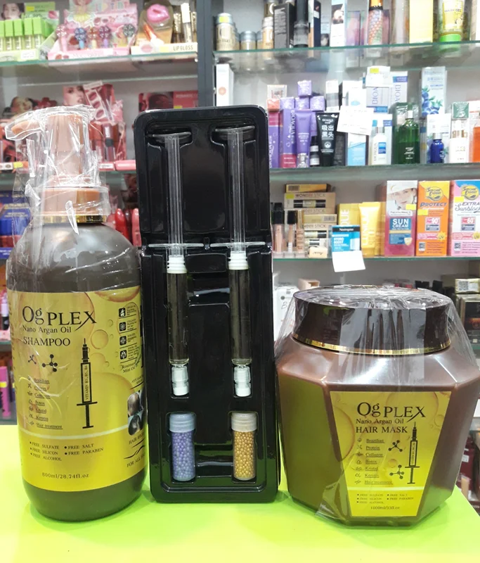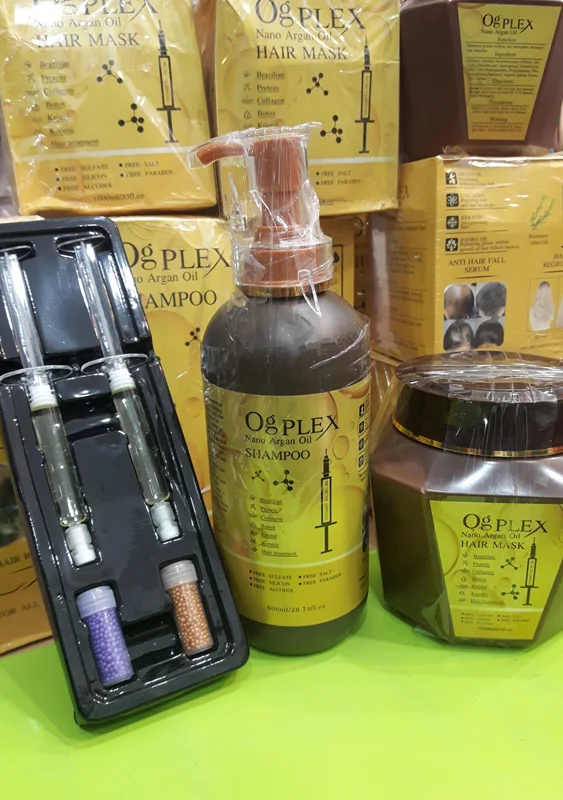 پک ماسک و شامپو اوجی پلکس به همراه روغن مخصوص ویال و کپسول، که برای احیاء بیشتر میباشد.